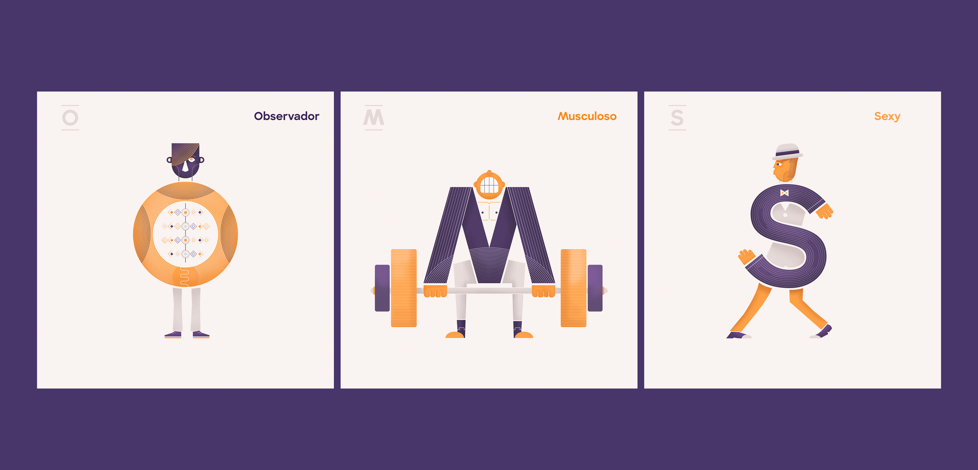 Desarrollo de una serie de personajes que cobran vida en función de la morfología que propone la familia tipográfica.